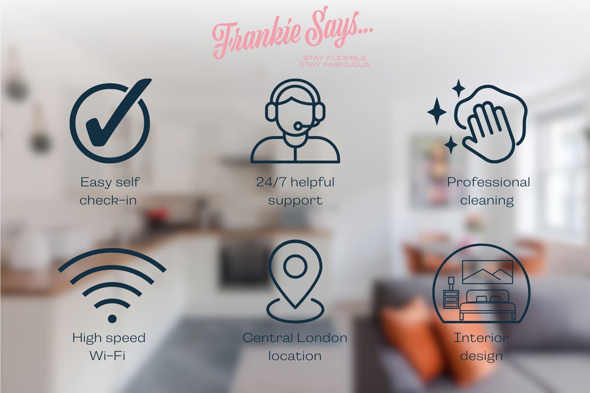 A serene Fitzrovia base where style meets comfort, perfect for business or leisure stays:✔ Open-Plan Living & Media – bright, airy lounge with sofa bed, Smart TV, and media hub for work or relaxing