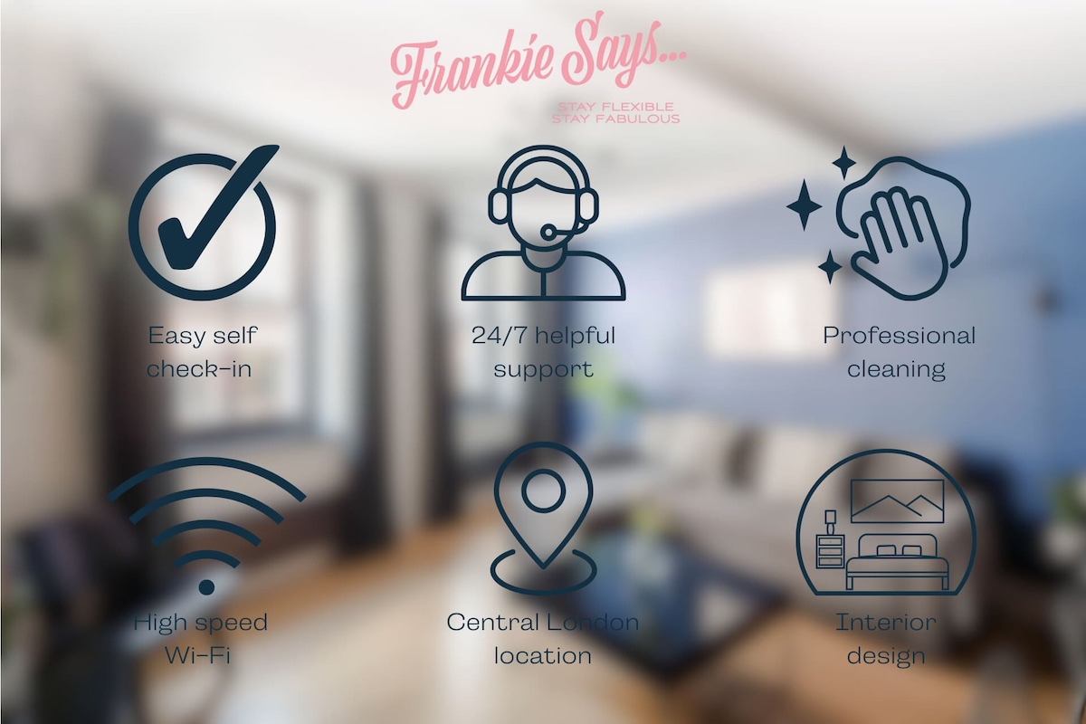 We loved our stay at Frankie’s in Covent Garden. Perfect for a family of four and such a great location. We were right in the middle of fantastic restaurants, cafes and theatres with a very handy tube station and local supermarket. Two bathrooms a big plus! Really clear instructions on how to enter the property and we liked not having to remember a key every time we left the apartment. Our host was very responsive and friendly. Quiet, clean and modern. We’d definitely stay again!