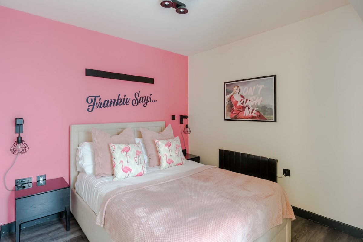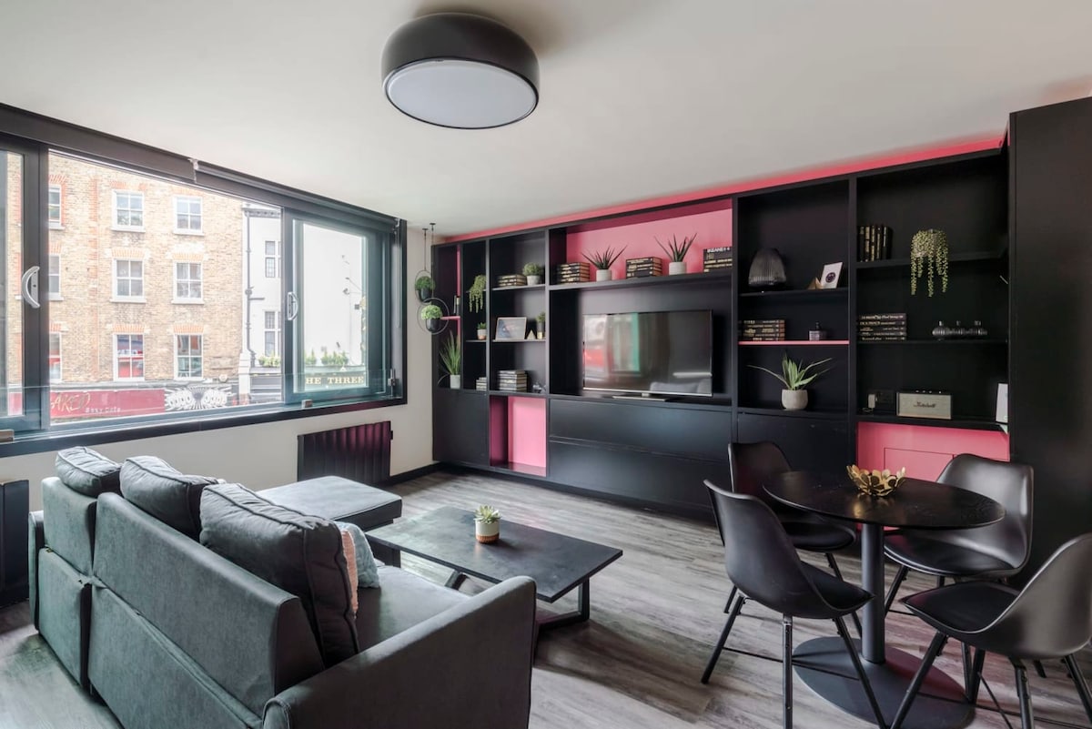 A vibrant, design-led Soho apartment combining bold interiors with a practical, well-laid-out living space - perfect for groups looking to stay in the centre of it all.
