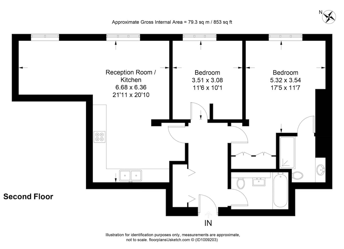 • Generous layout: 853 SQ FT / 79.24 SQ M of living space on the second floor, with lift access.