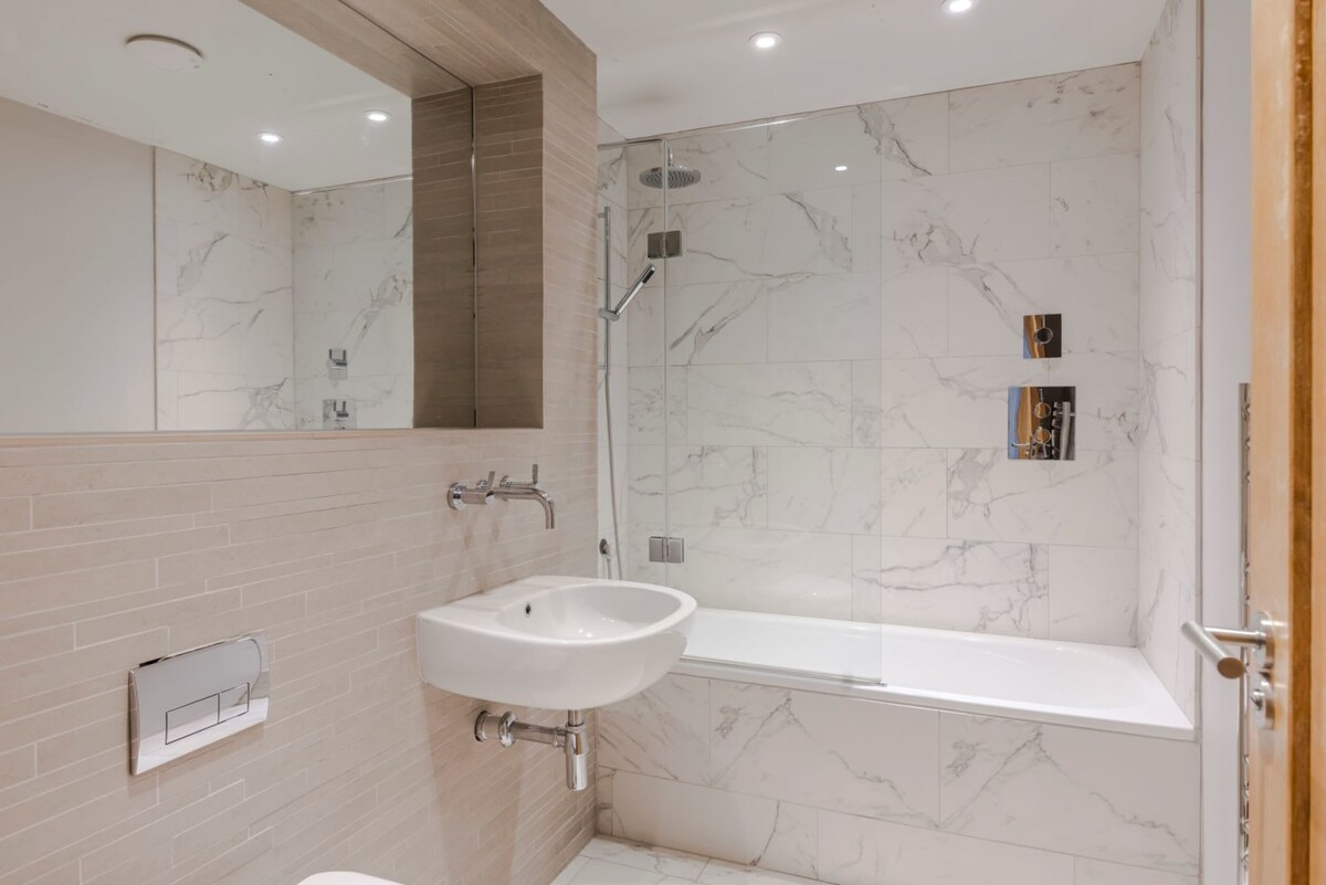 The living area and dining space provide a comfortable environment for work or relaxation, while the fully equipped kitchen supports easy dining and entertaining. Centrally located, it offers convenient access to London’s restaurants, cultural attractions, and business hubs.