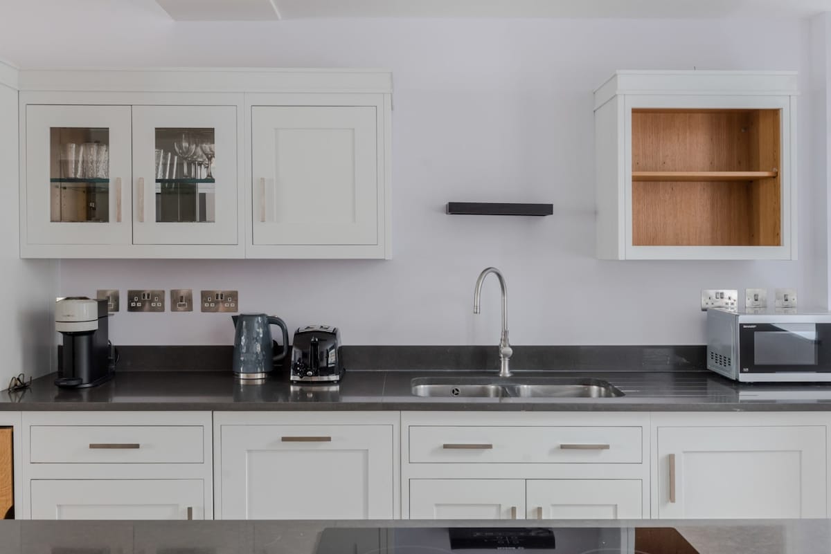 • Additional amenities: Fresh bedding, towels, and toiletries provided, alongside a welcome pack of tea, coffee, and biscuits. Cleaning essentials and dishwasher/washing machine tablets included for convenience.