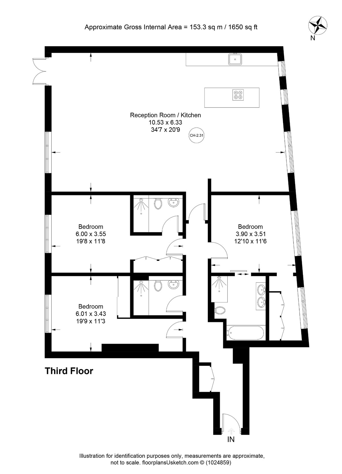 • Generous layout: 1,650 SQ FT / 153.3 SQ M of living space on the third floor, with lift access.