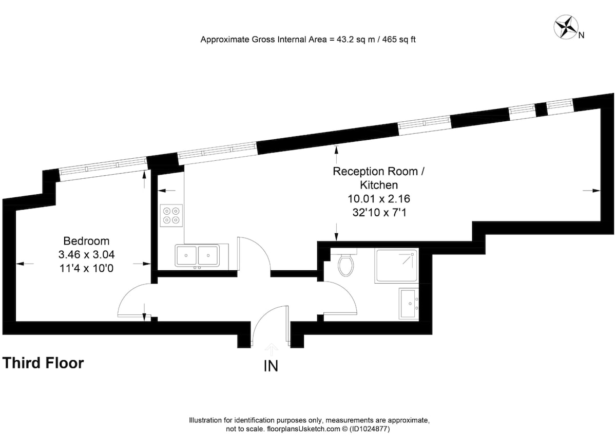 • Layout: 465 SQ FT / 43.2 SQ M of living space on the second floor, with lift access.