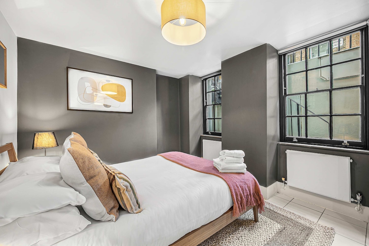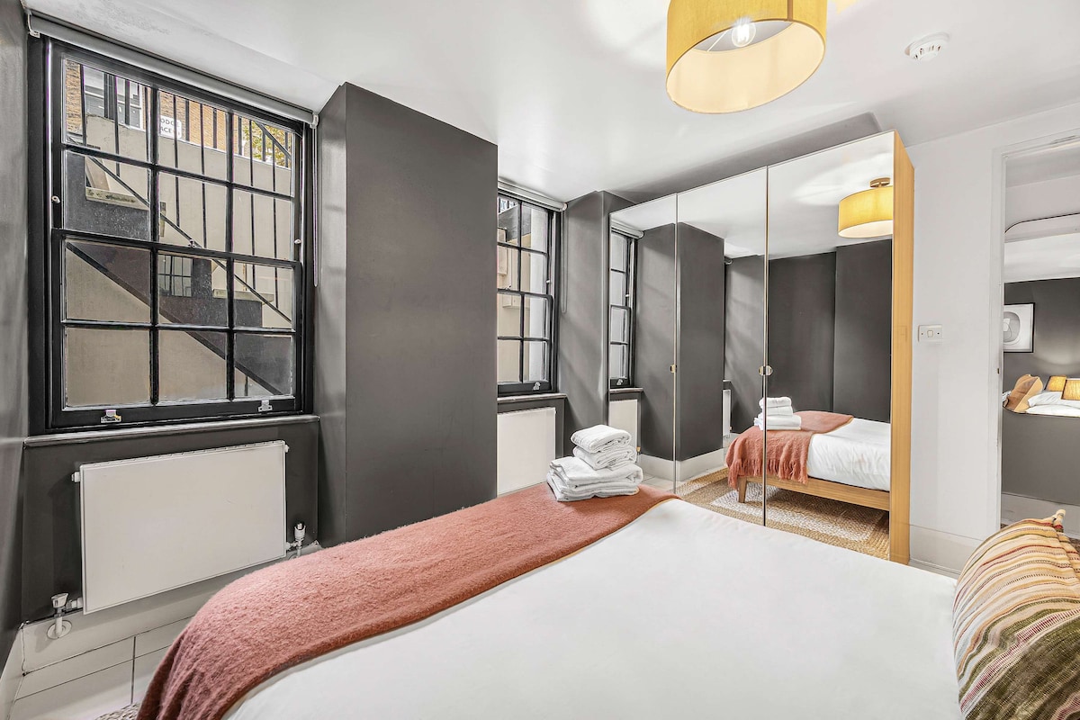 A generous Fitzrovia duplex on Goodge Place, moments from Charlotte Street, Soho and the West End. This 2 bedroom apartment with sofa bed sleeps up to 6 guests. Close to Goodge Street and Tottenham Court Road stations, with Oxford Street, the British Museum and Covent Garden all nearby.