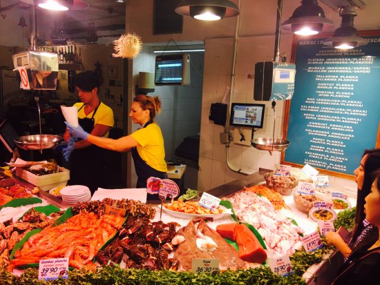 The setting is lively, with the sounds and energy of the market all around you, and the staff are known for their warm service. It’s a great spot for a quick, budget-friendly bite while you explore La Boqueria.