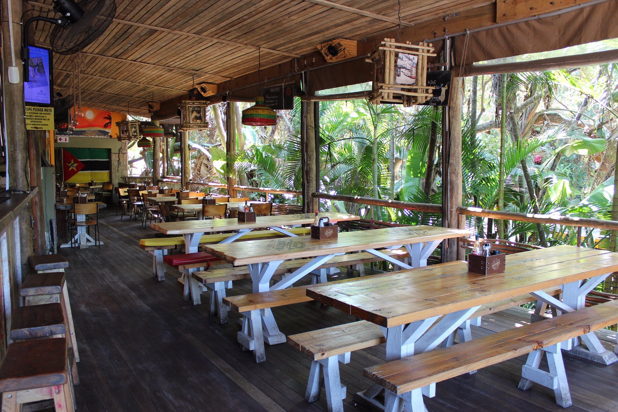Unique Features: Beach hut setting, upstairs wooden bar nestled in the trees.